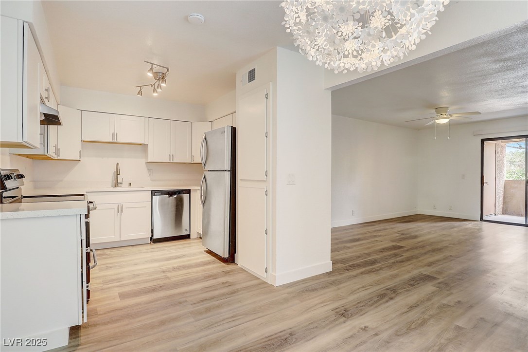 Desert Shores area. The floor plan is bright and inviting, with luxury vinyl plank flooring, freshly painted walls, and numerous impressive features. The kitchen is a highlight, with new quartz countertops and new white shaker cabinets, along with new stainless steel appliances. All baseboards have been upgraded to 4.5" to completely enhance this fully renovated condo. The community offers a pool, spa, clubhouse, and fitness center. This is resort-style living at its finest!