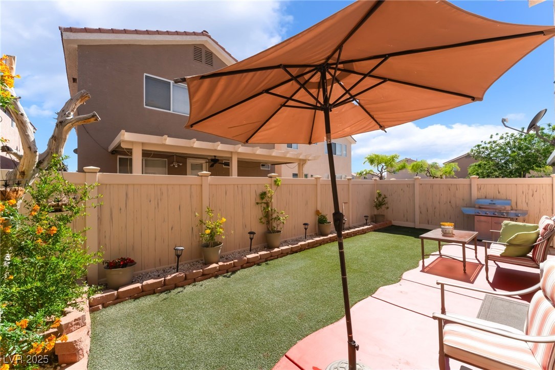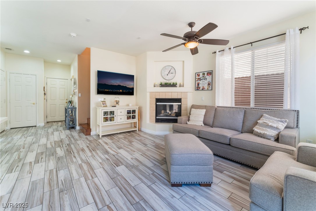 Charming three-bedroom home nestled within a secure, gated community. This professionally decorated residence showcases a stylish two-tone designer paint scheme and thoughtfully placed pot shelves, complemented by a dedicated media niche. The living area features a cozy fireplace and is wired for surround sound. Enjoy comfort in every room with ceiling fans, and benefit from the convenience of installed window coverings and upgraded plumbing fixtures. The home includes a versatile upstairs loft area and a generously sized pantry for all your storage needs. Every room is equipped with cable wiring and features spacious walk-in closets. This property is presented in truly immaculate and clean condition. Step outside to a beautifully landscaped backyard, creating a perfect outdoor retreat.